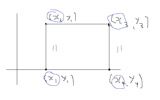 처음에 위 문제는 어떻게 남들이 알아보기 쉽게 코드를 작성 할 수 있을지 생각해보았지만, 아직 실력이 부족해서 약간의 If문의 반복된 작업을 통해 문제를 해결하였다. x1 축과 x2축이 같으면 자동적으로 현재 구하는 x4좌표는 x3과 같을 것이다. 그리고 x2와 x3의 x좌표가 같으면 또한 x1과 x4도 똑같을 것이다. 이를 Y축에도 적용하여 위와같이 작성하면 답을 구할 수 있다.