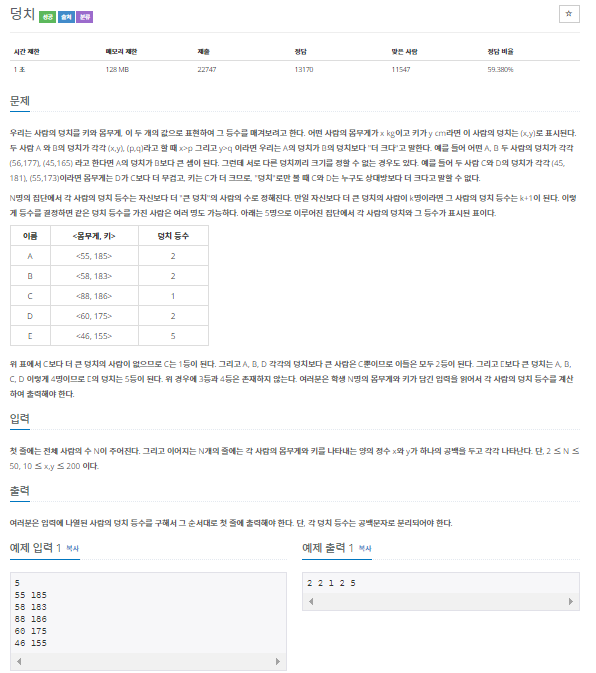 7568번: 덩치